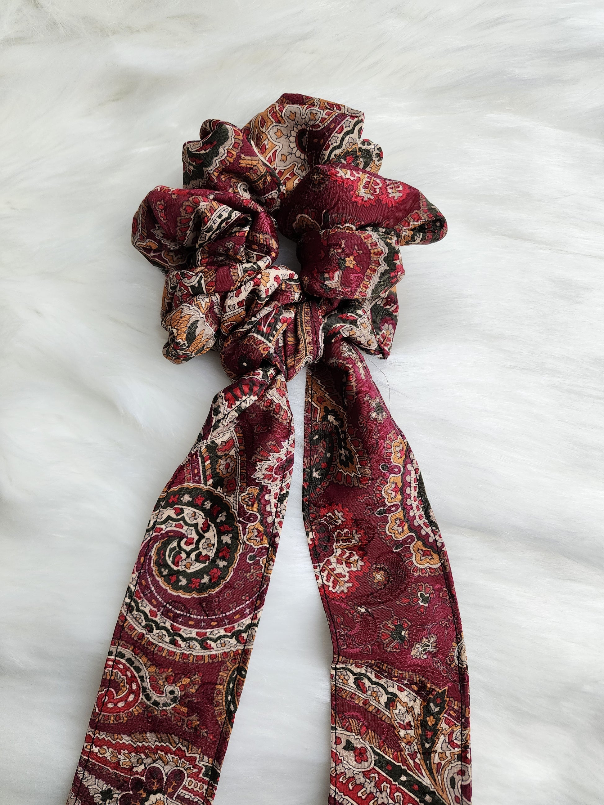 BURGUNDY PAISLEY BOW SCRUNCHIE