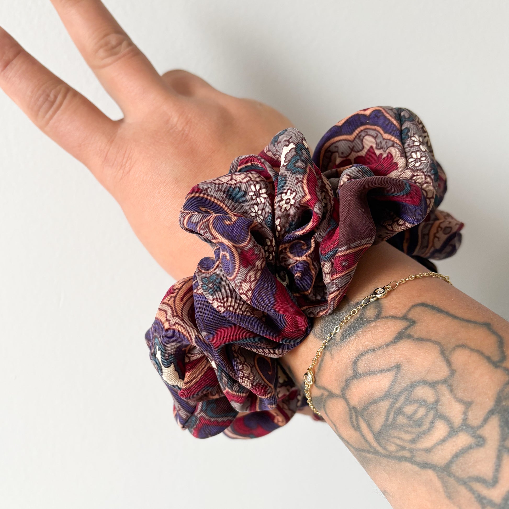 The perfect boho style paisley upcycled scrunchie. Available in two sizes.