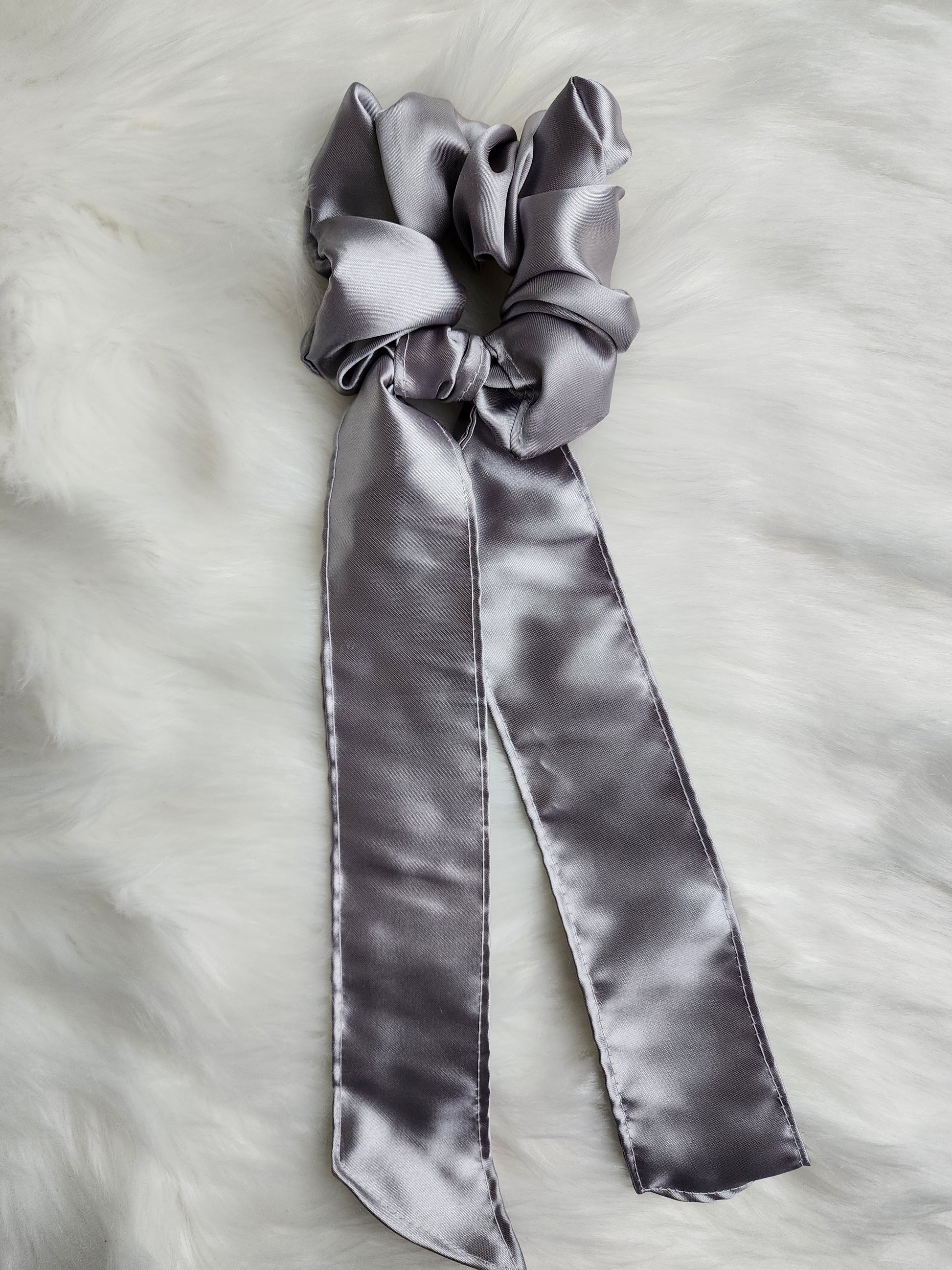 Grey coloured upcycled satin fabric made into the perfect stylish accessory